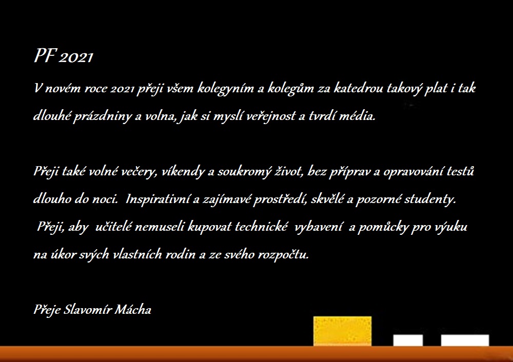 Syn (s povzdechem): Jo, třeba dva roky prázdnin. Tomu dřív fakt nikdo nevěřil.